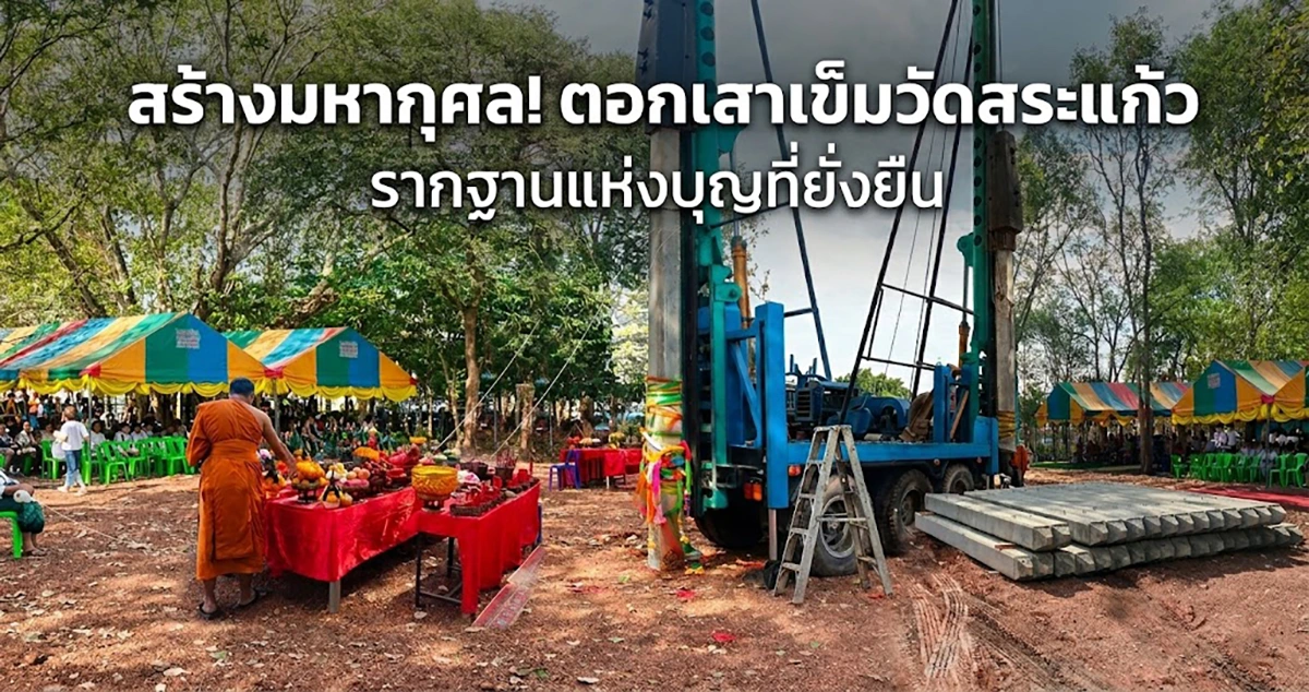 รายละเอียดสร้างมหากุศล! ตอกเสาเข็มวัดสระแก้ว รากฐานแห่งบุญที่ยั่งยืน